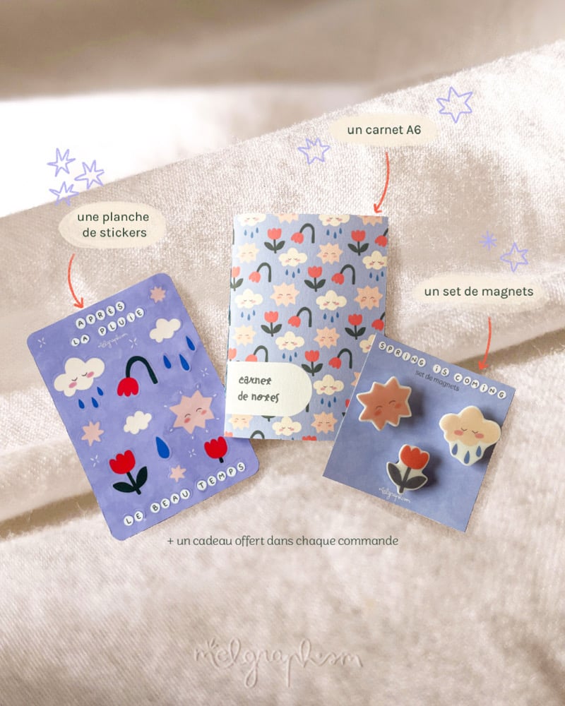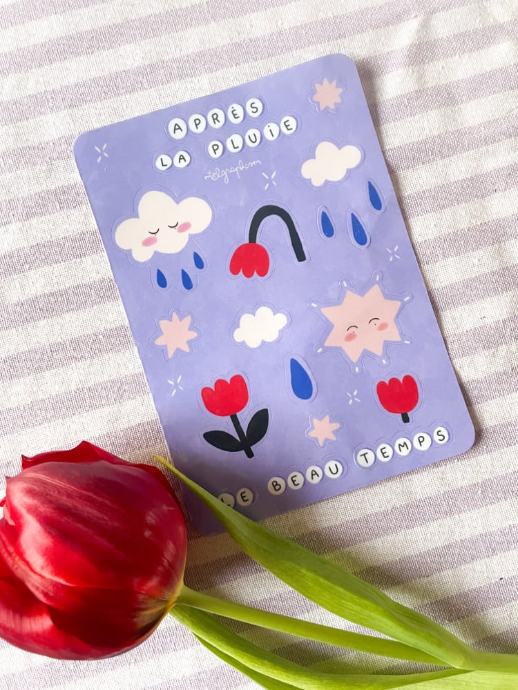 • Une planche de stickers pour te rappeler qu’après la pluie, vient le beau temps !